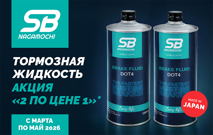 03.03 - 31.05.2026 Акция «2 по цене 1: скидка 50% на Жидкость тормозная DOT4, 1л СБ НАГАМОЧИ (SB Nagamochi)»